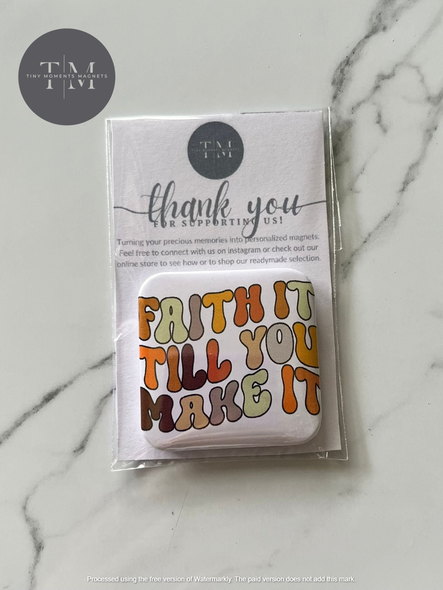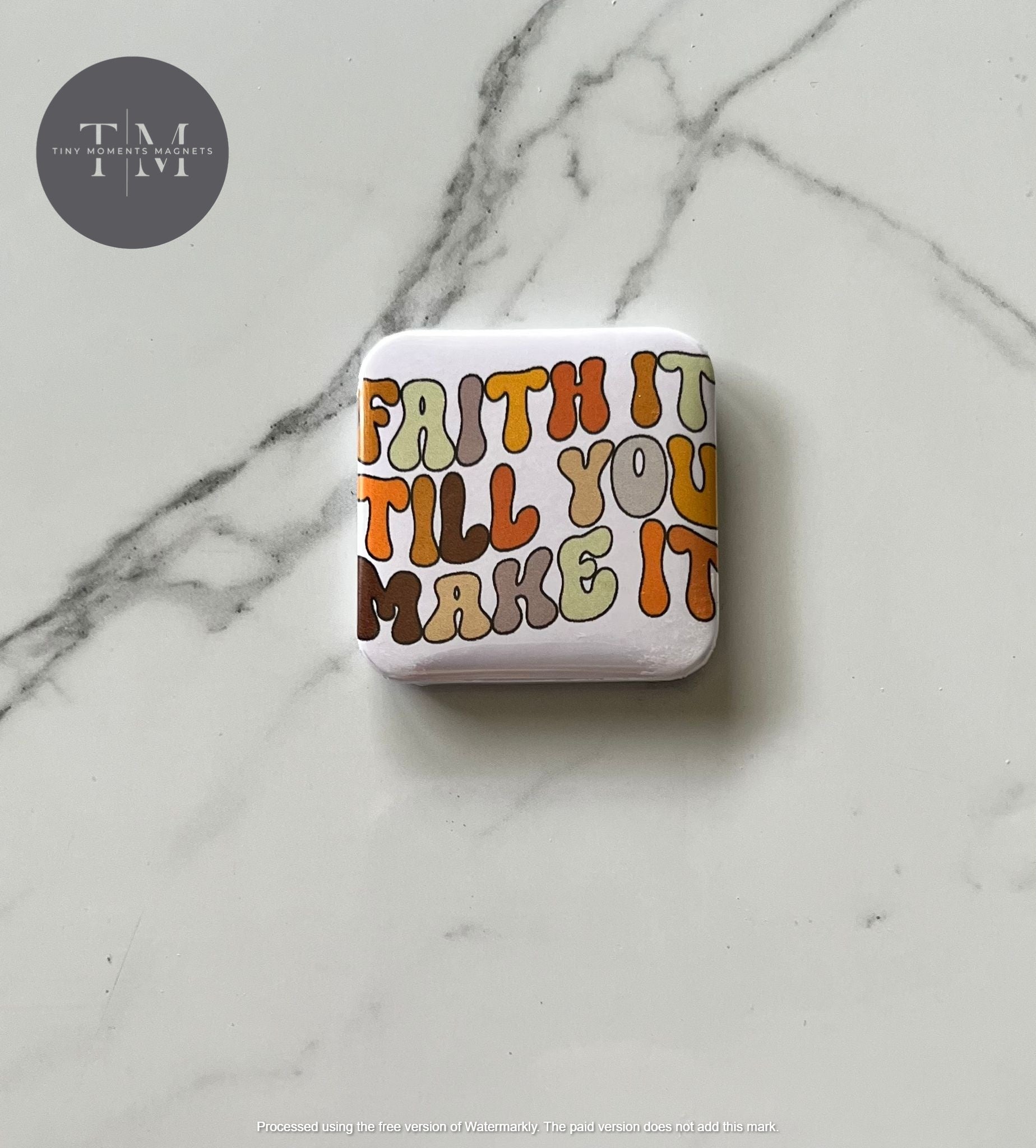 1.5" square magnet of a Spiritual quote : Faith it till you make it II