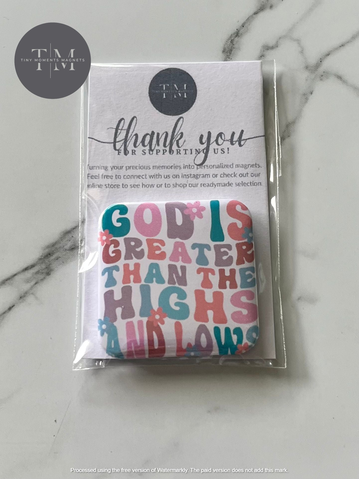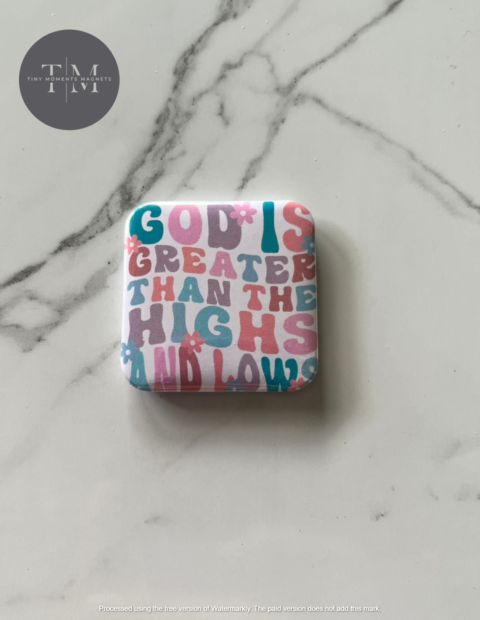 1.5" square magnet of a Spiritual quote : GOD greater High and Low II