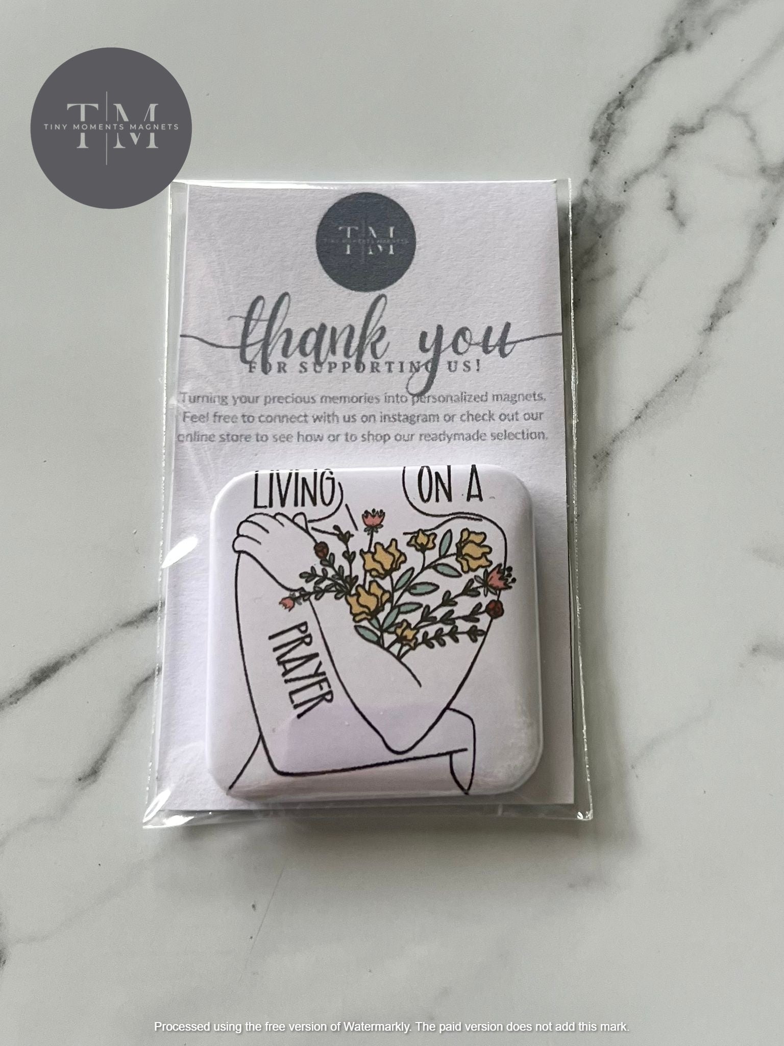 1.5" square magnet of a Spiritual quote : Living on a Prayer