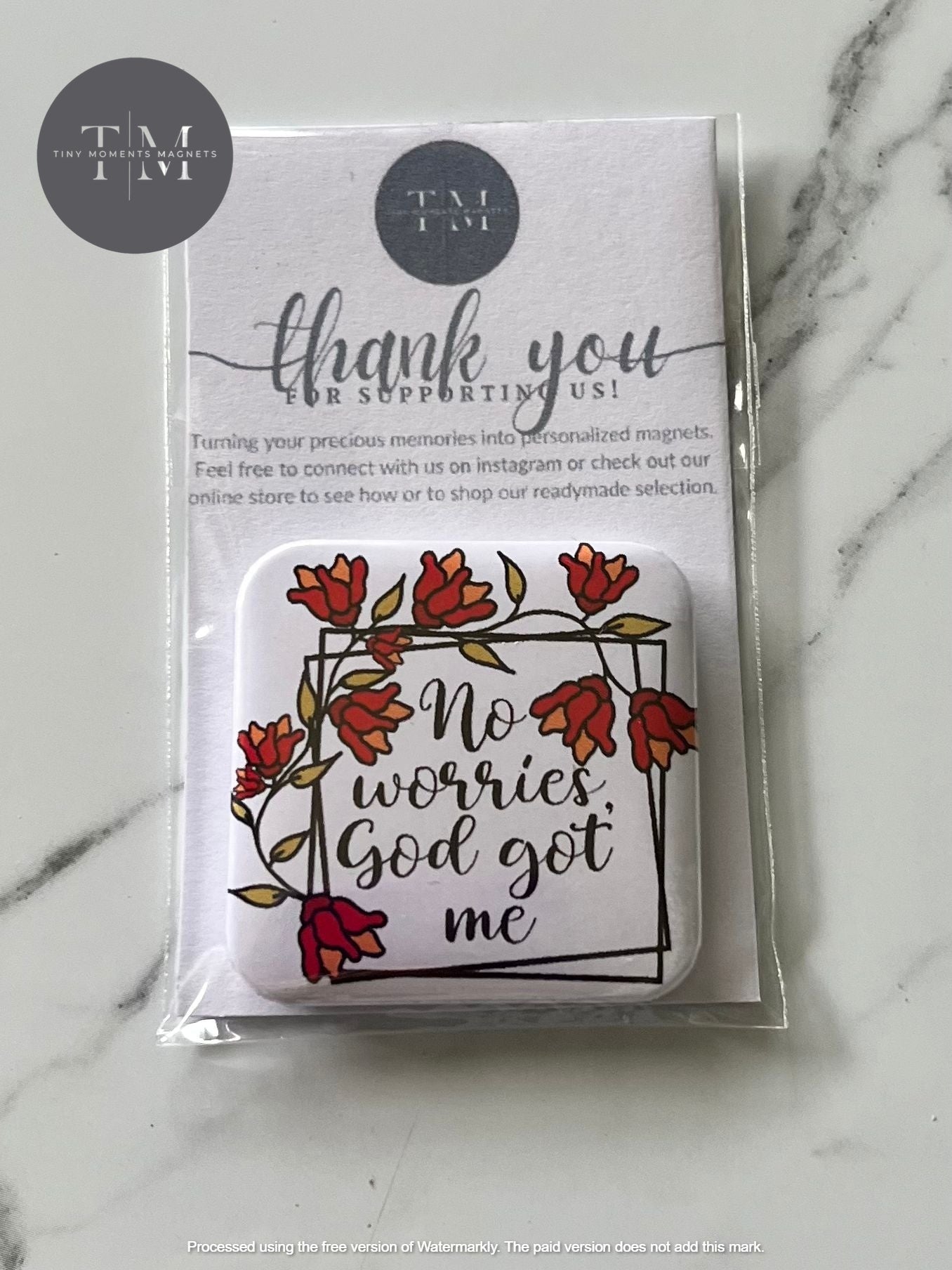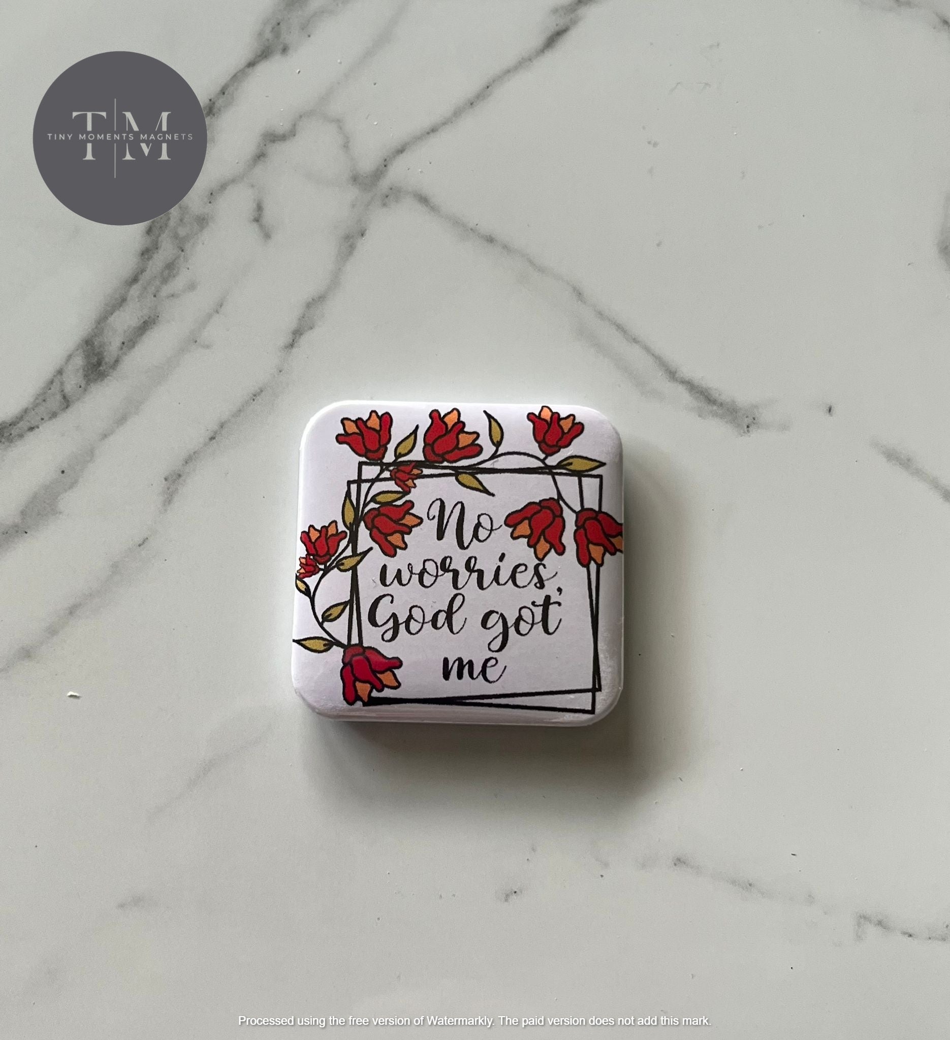 1.5" square magnet of a Spiritual quote : No worried GOD got me