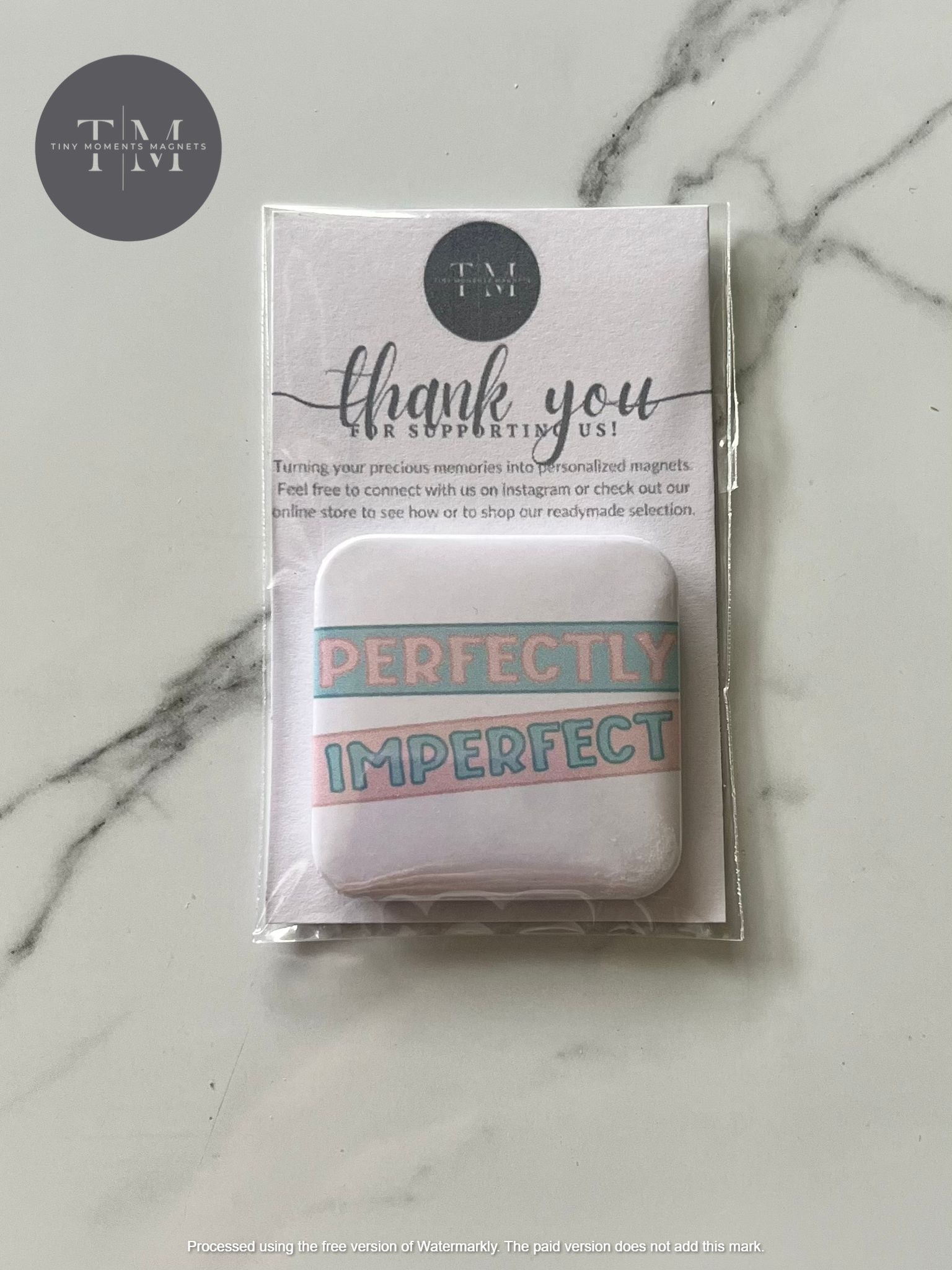 1.5" square magnet of Words of Affirmation : Perfectly imperfect