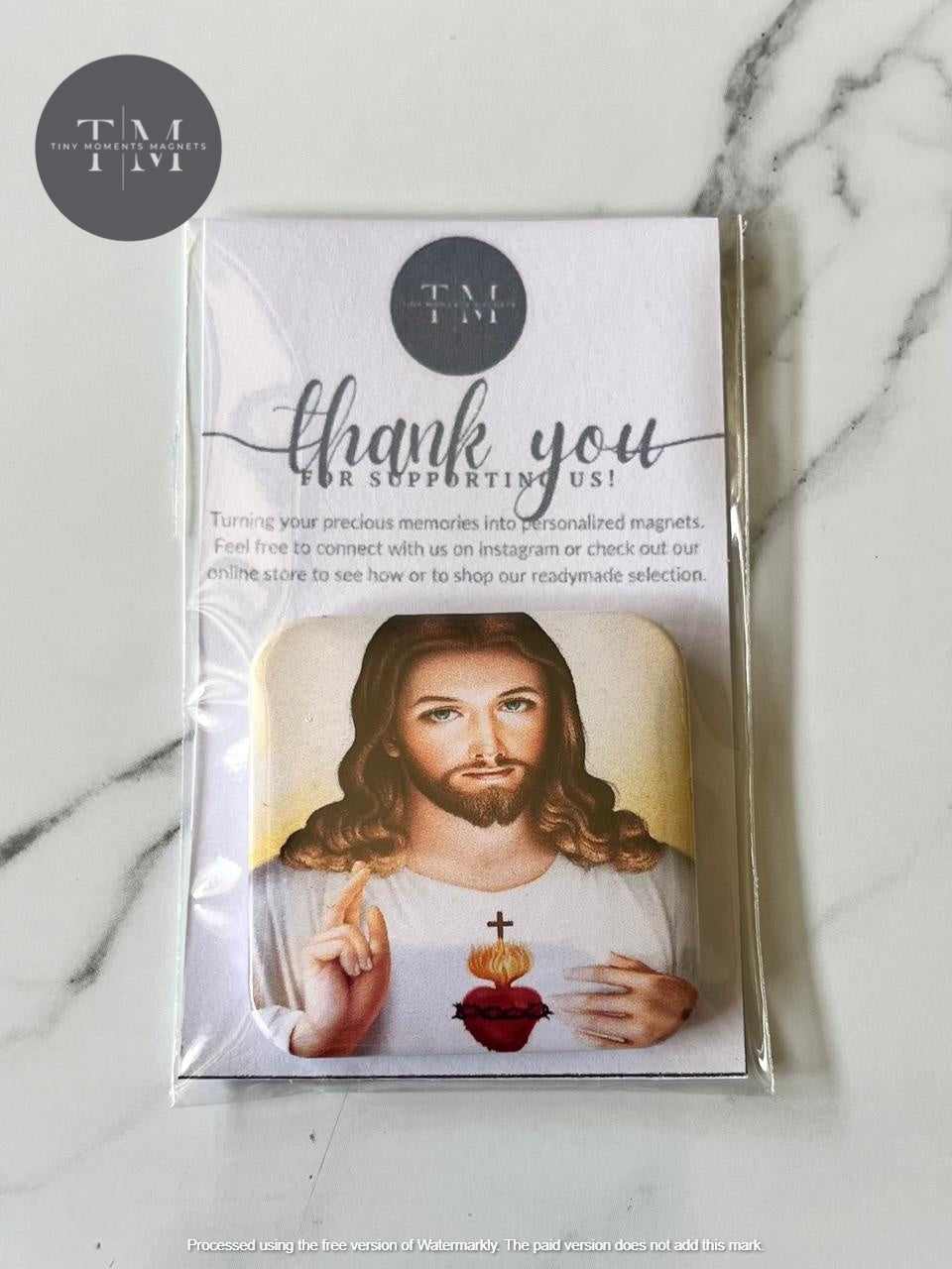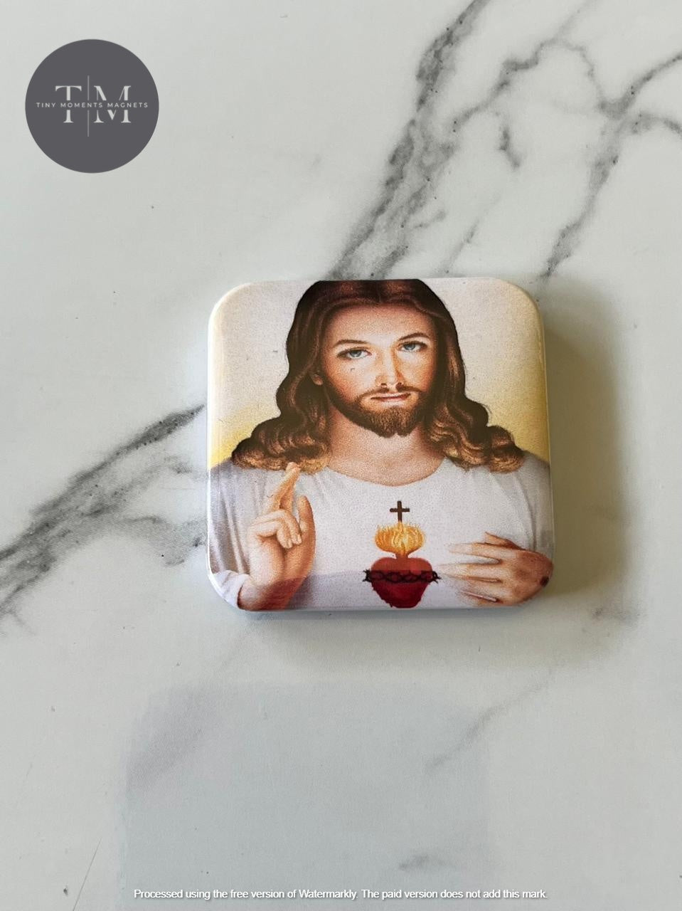 1.5" square magnet of Sacred Heart of Jesus picture/icon